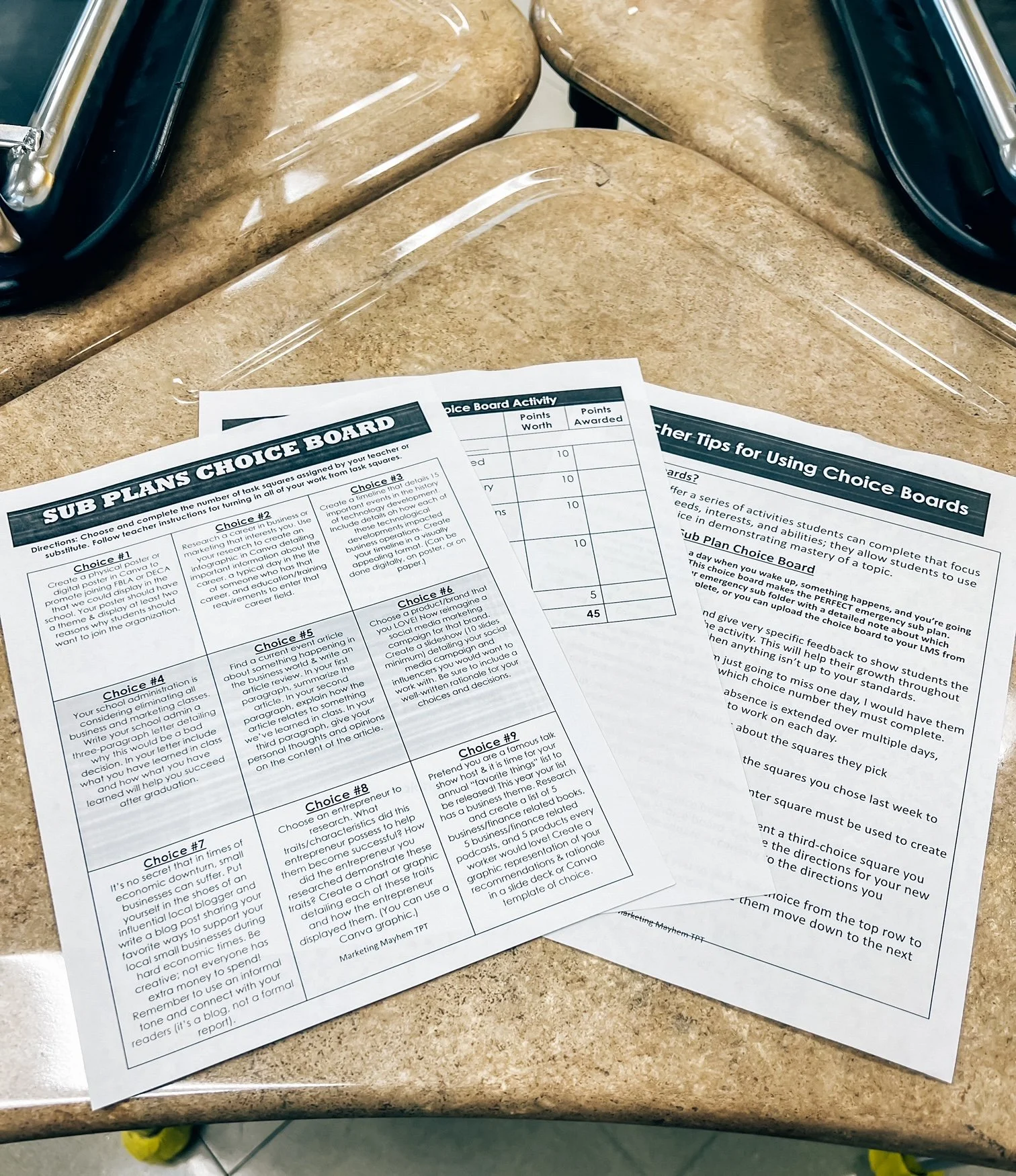 If you need a no prep, ready to go sub plan, check out my Emergency Sub Plan Choice Board. I love this one because it has so many engaging activity choices for students, and you can expand and use it over multiple days if you need to!